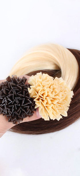 LilyHair® have I tip, U tip, Flat tip and V tip hair extensions under Pre-bonded Hair Extensions. These fusion hair extensions are almost the same except the shape of the keratin at the end of each strand, heating up the keratin tip found at the end of the extension, to attach it to your natural hair.